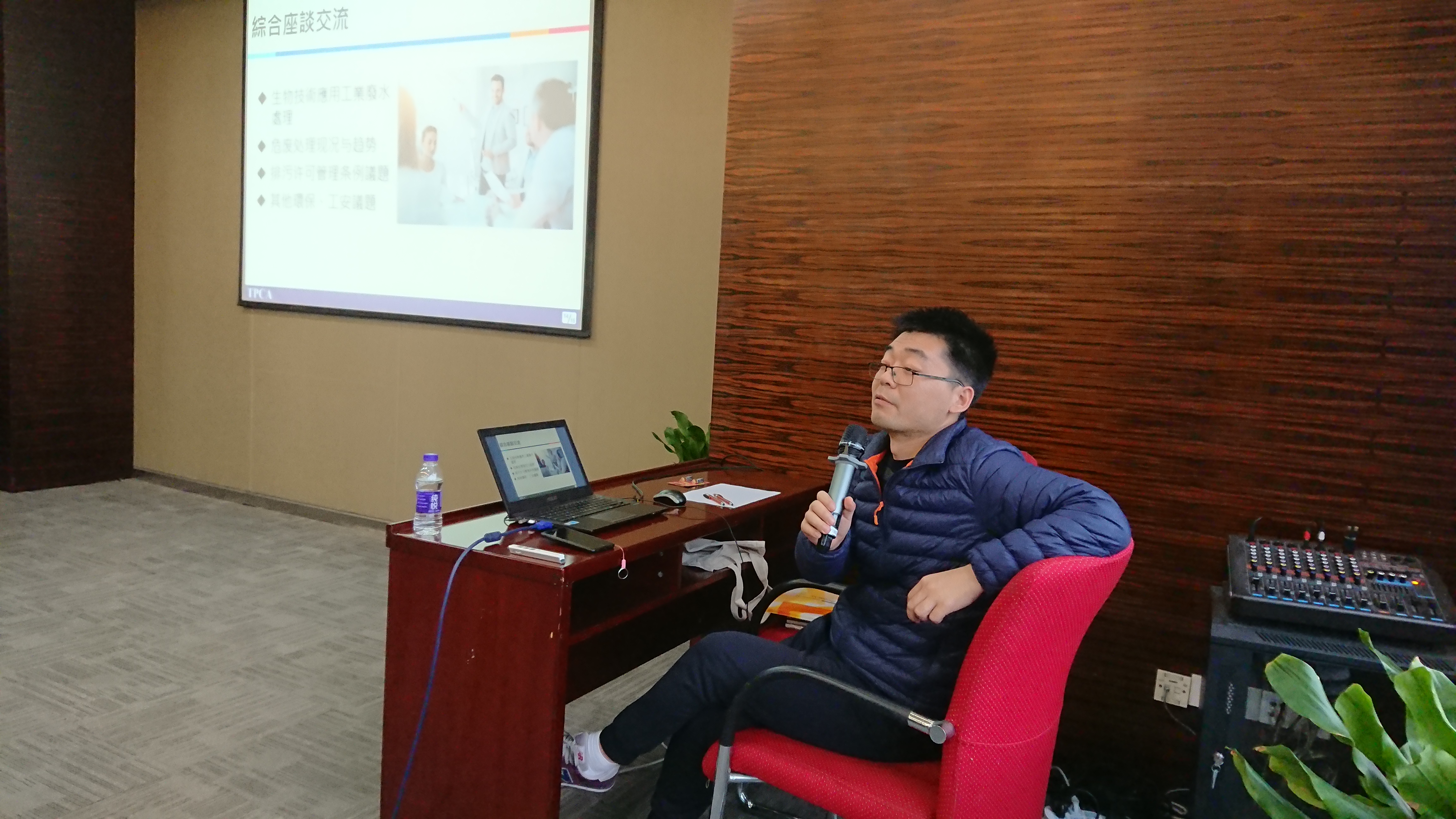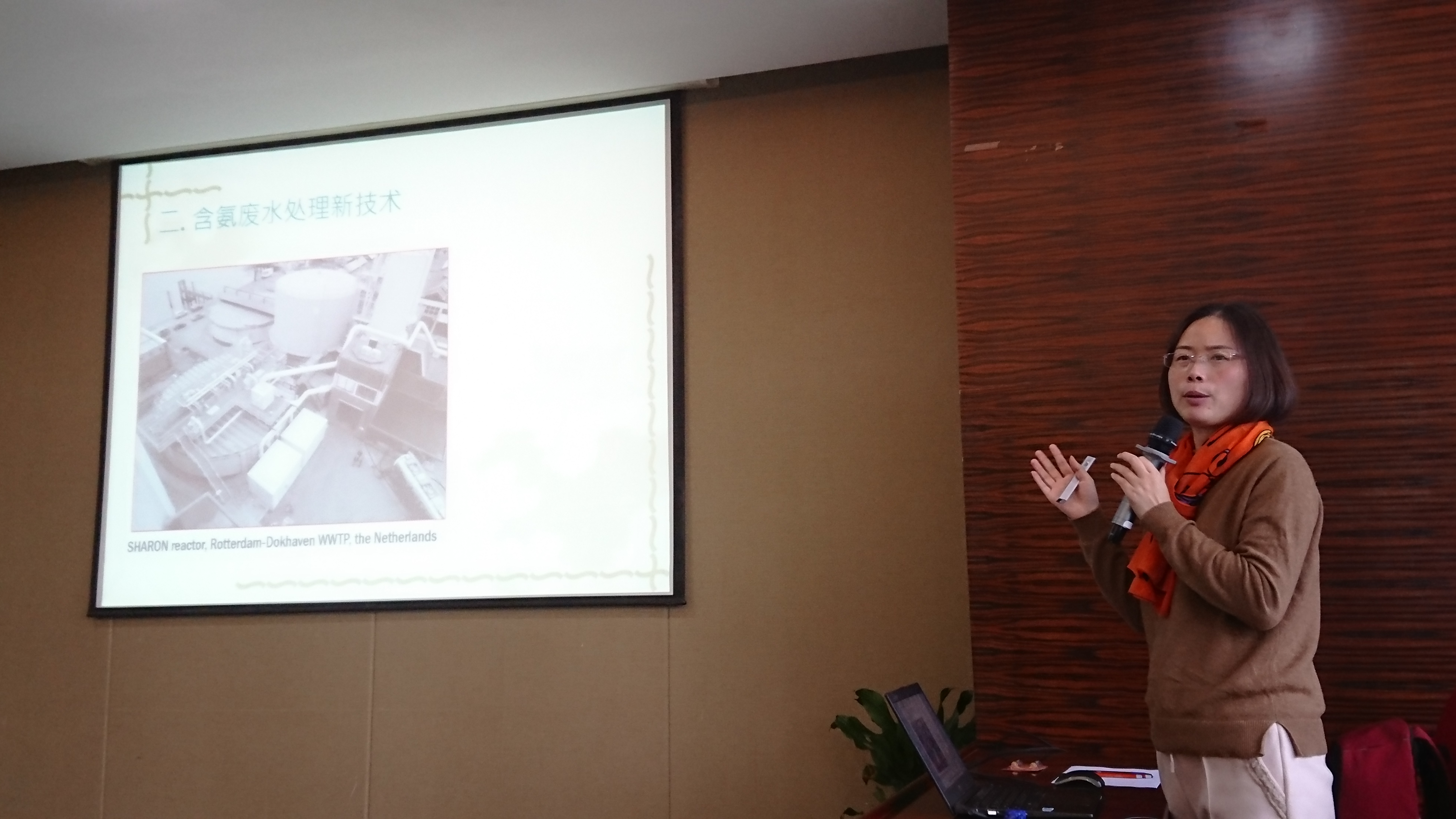一開始先邀請本次會議主席滬利微電王曉春處長來致詞,他提到中央對環保稽查的力度只會加強不會鬆綁,要廠商一起面對,並彼此交流最新的環保解決方案。接著由蘇科大袁怡副教授來分享PCB蝕刻廢液含氨廢水處理新技術與案例,透過生物分解的方式。不僅環保又可以加速氮氣的分解,減少污泥的產生。可惜這種方式目前的費用還很高,有賴各研究單位的努力,讓它及早商業化。