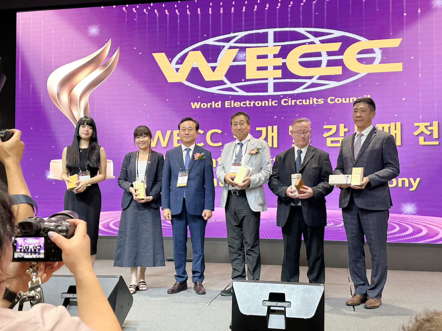 作為 世界電子電路協會(WECC) 成員,台灣電路板協會(TPCA)今年由秘書長 賴家強 出席剪綵儀式、VIP guided tour與歡迎晚宴,並接受KPCA頒發感謝狀。TPCA副理事 邱渲穎、國際事務委員 洪健庭等人也共同參與晚宴,展現國際交流深度。主辦單位並於次日安排 WECC lunch,以韓國傳統烤肉宴請包括CPCA、JPCA、HKPCA、TPCA及THPCA等國際組織成員,本活動由秘書長賴家強、國際事務委員洪健庭及秘書處代表出席。
