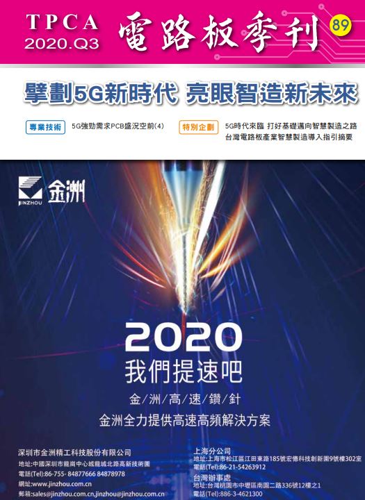 • 不需砸大錢也能邁入工業3.5(宇清數位智慧股份有限公司 陳致諭、游智閔) • 實戰PCB智慧倉儲—架構與導入策略(鵬鼎控股 張啟原博士) • 2020年電路板設備安全標準( 群翊工業股份有限公司 洪健庭) • TPCA會員大會標竿論壇:疫情過後 世界的變與不變 (TPCA市場資訊部彙整) • 2020H1台灣PCB產銷調查及營運報告分析 (工研院 產科國際所) • 2019全球PCB百大排行與行業動態( N.T. Information Ltd 中原捷雄博士) • 泰國4.0引領產業升級新引擎 (TPCA市場資訊部 彙整) • WECC最新動態 (TPCA市場資訊部 彙整) • 財務資訊公告 (TPCF 彙整) • TPCF公益小黑板 數字1、2、3...... (TPCF 彙整) • 綠色專題報導(TPCF 彙整) • PCB公益專欄 TPCF 彙整 • TPCA趨勢上線研討會 加碼推出 隨選隨看( TPCA會員服務部 彙整) • 第十屆第二次會員大會 圓滿順利(TPCA會員服務部 彙整) • 會員大會標竿論壇 關注疫後世界的變與不變 (TPCA會員服務部 彙整) • 6-8月活動花絮( TPCA會員服務部 彙整)