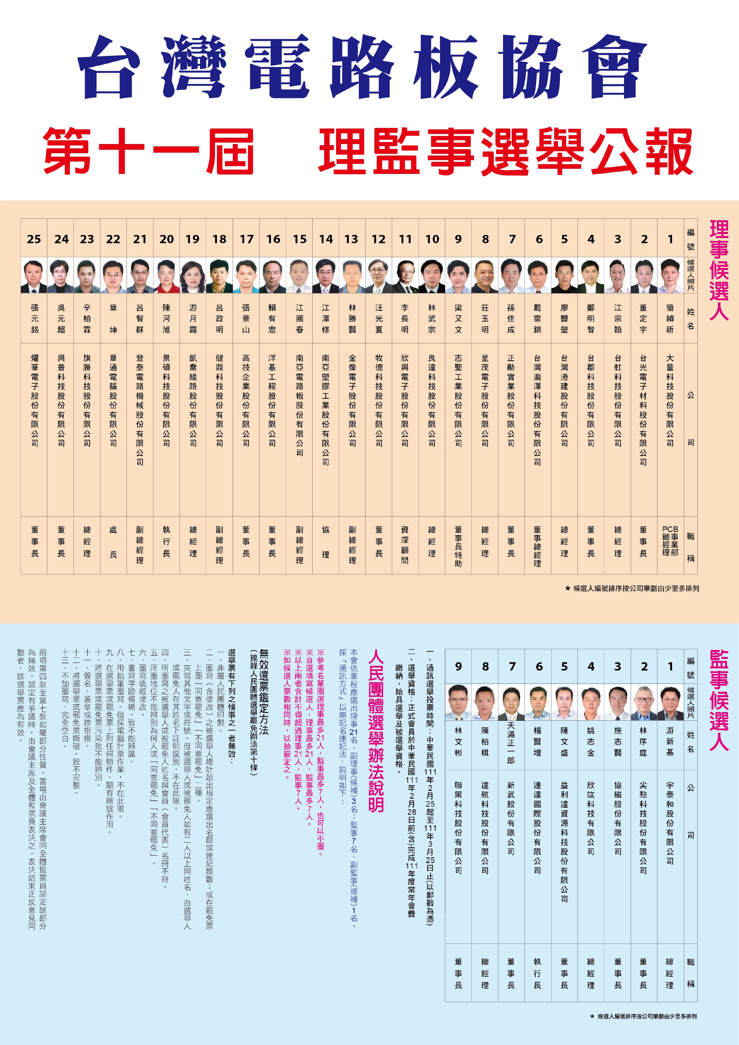 [選舉公告]台灣電路板協會 第十一屆理監事選舉 選舉公報