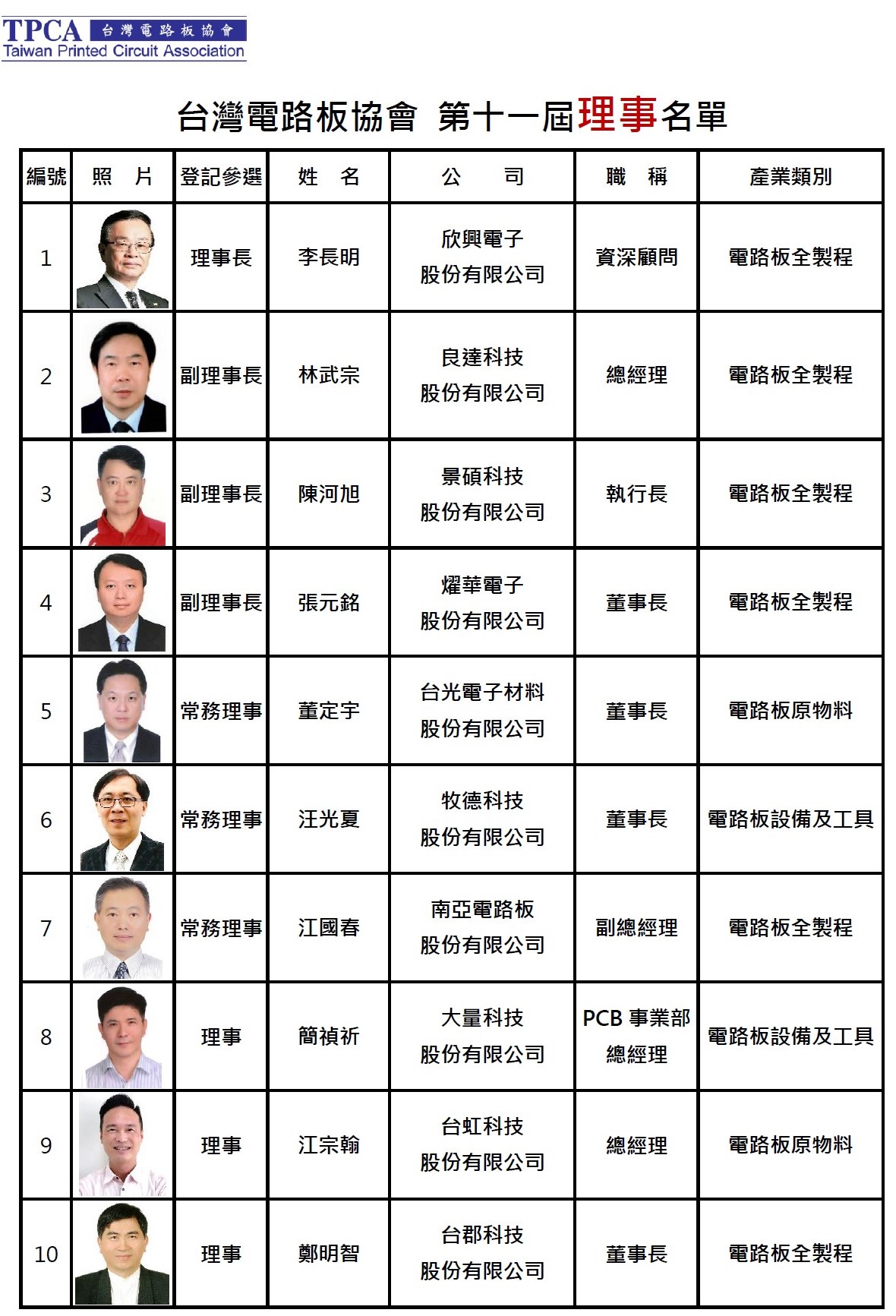台灣電路板協會 第十一屆理監事選舉 結果公告