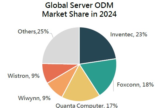 - Although Apple is a latecomer to the CSP space, its vast user base for end products and its formidable supply chain network are likely to drive rapid growth in its market share once it enters the AI server market. Apple could even achieve a dominant position in the future. Given Taiwan’s leadership in server manufacturing and the current geopolitical landscape, Apple’s entry into the server market would be a significant boon for the electronics components industry.
