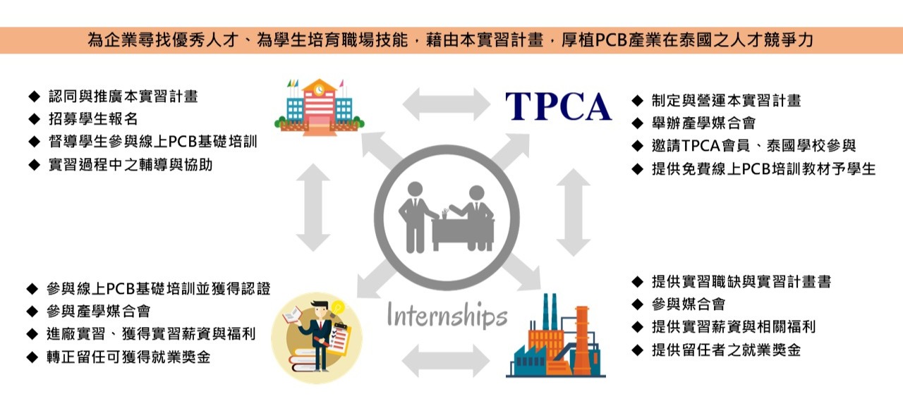 本實習計畫由台灣電路板協會(TPCA)發起,結合泰國與台灣領先 PCB 企業資源 並獲得泰國政府相關部門的支持,致力於培育符合國際需求的跨國技術與管理人才