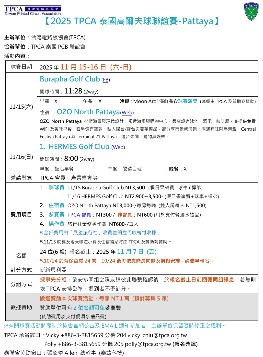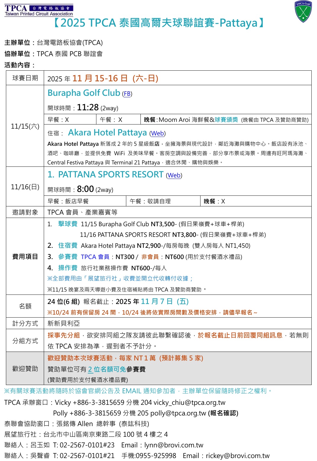 【11/15-16】 TPCA泰國高爾夫球聯誼賽-Pattaya