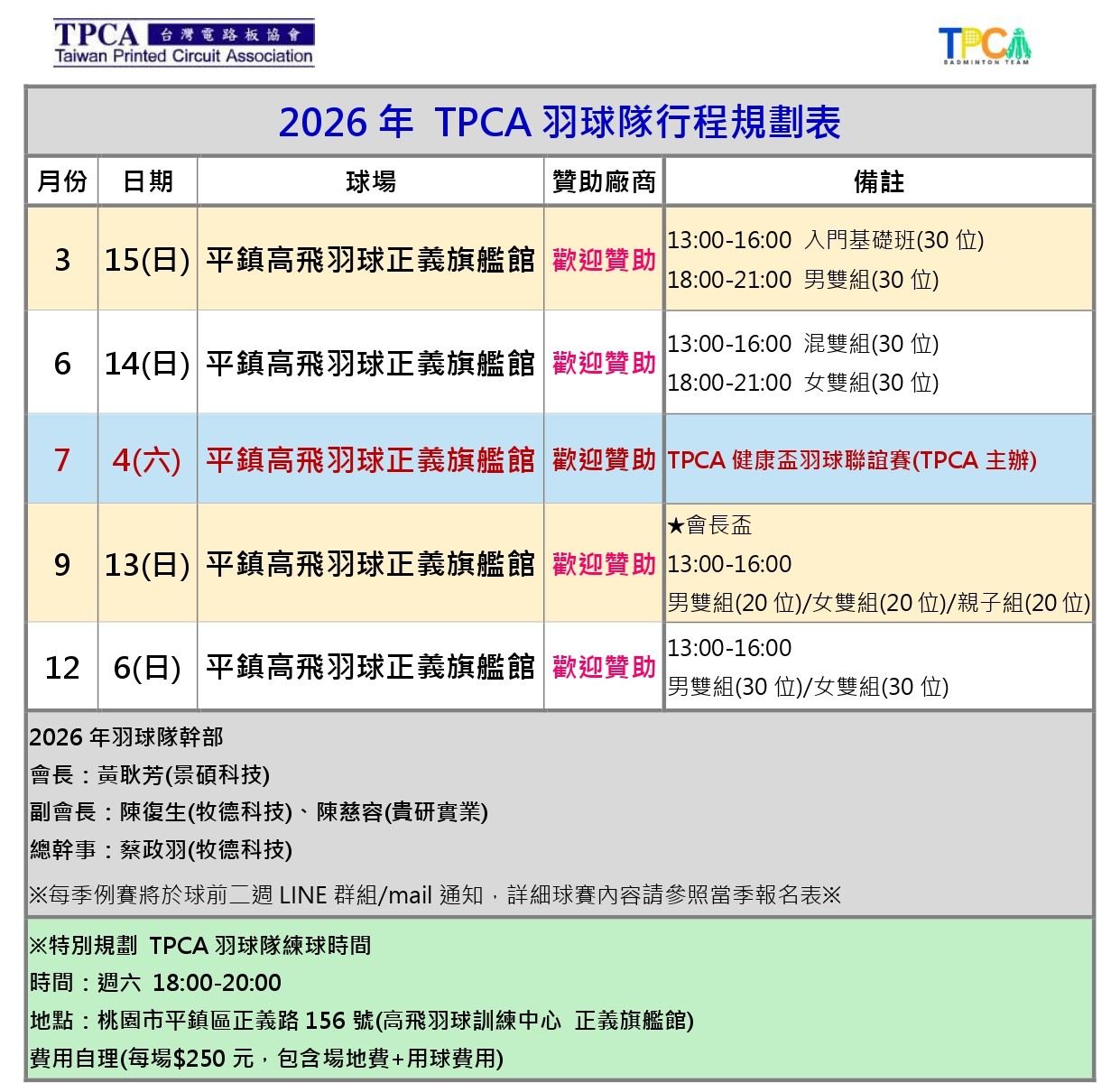 有興趣參加可以與TPCA 聯繫與申請入隊