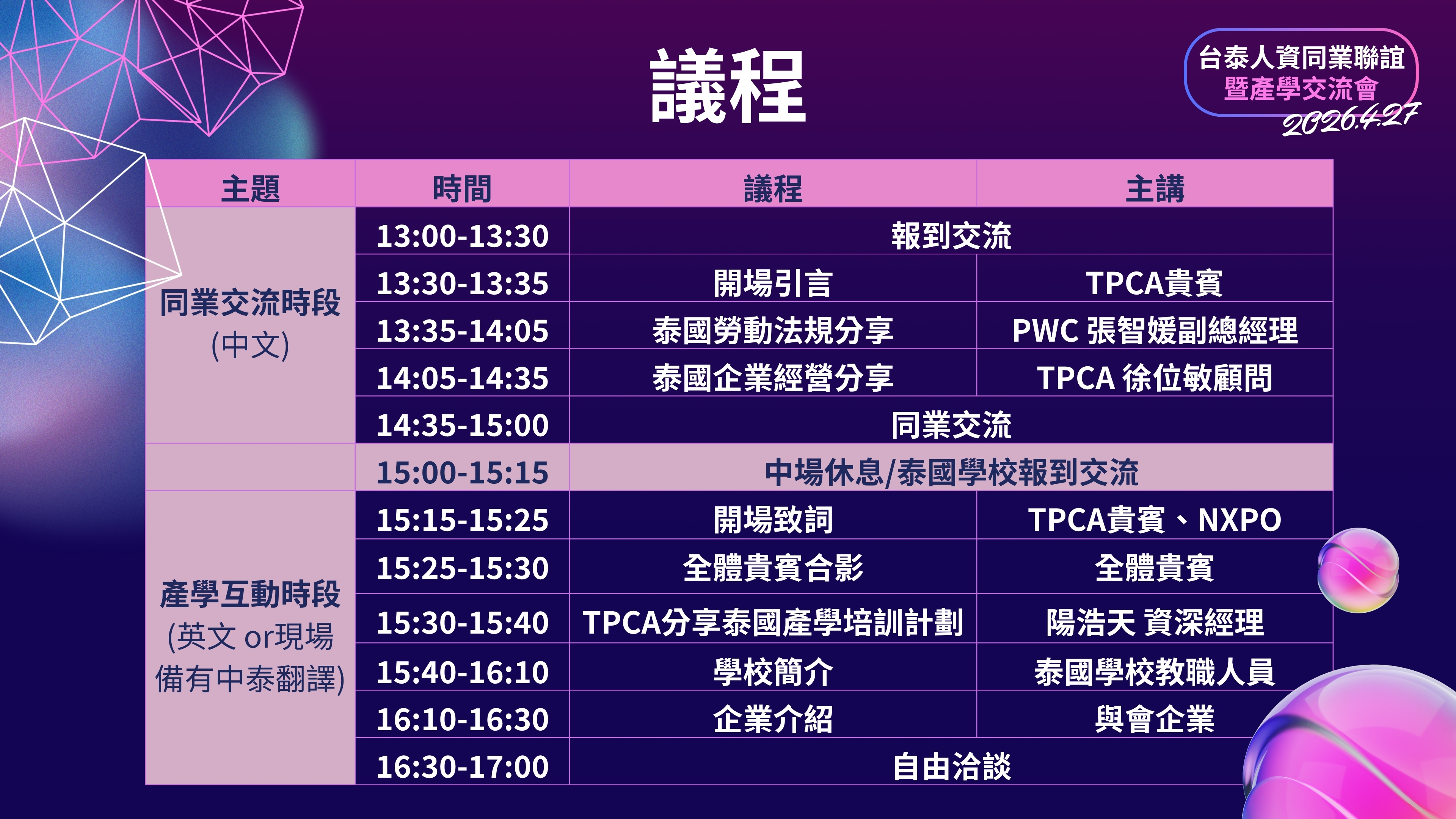 【時間】2026年4月27日(一) 13:00~17:00