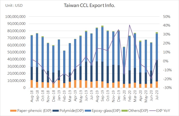 [Jul 2020]Taiwan CCL Export YoY 2.3%