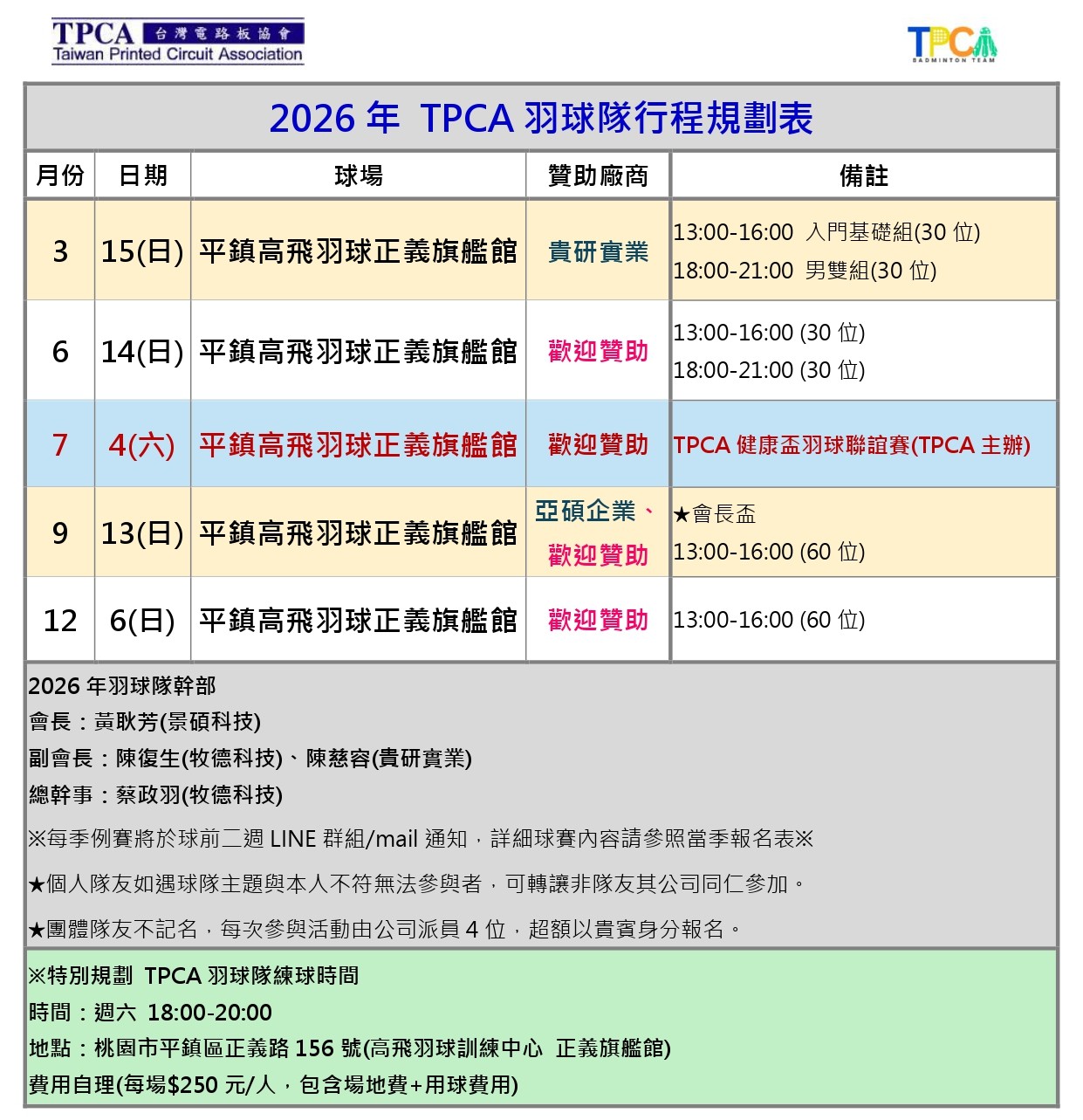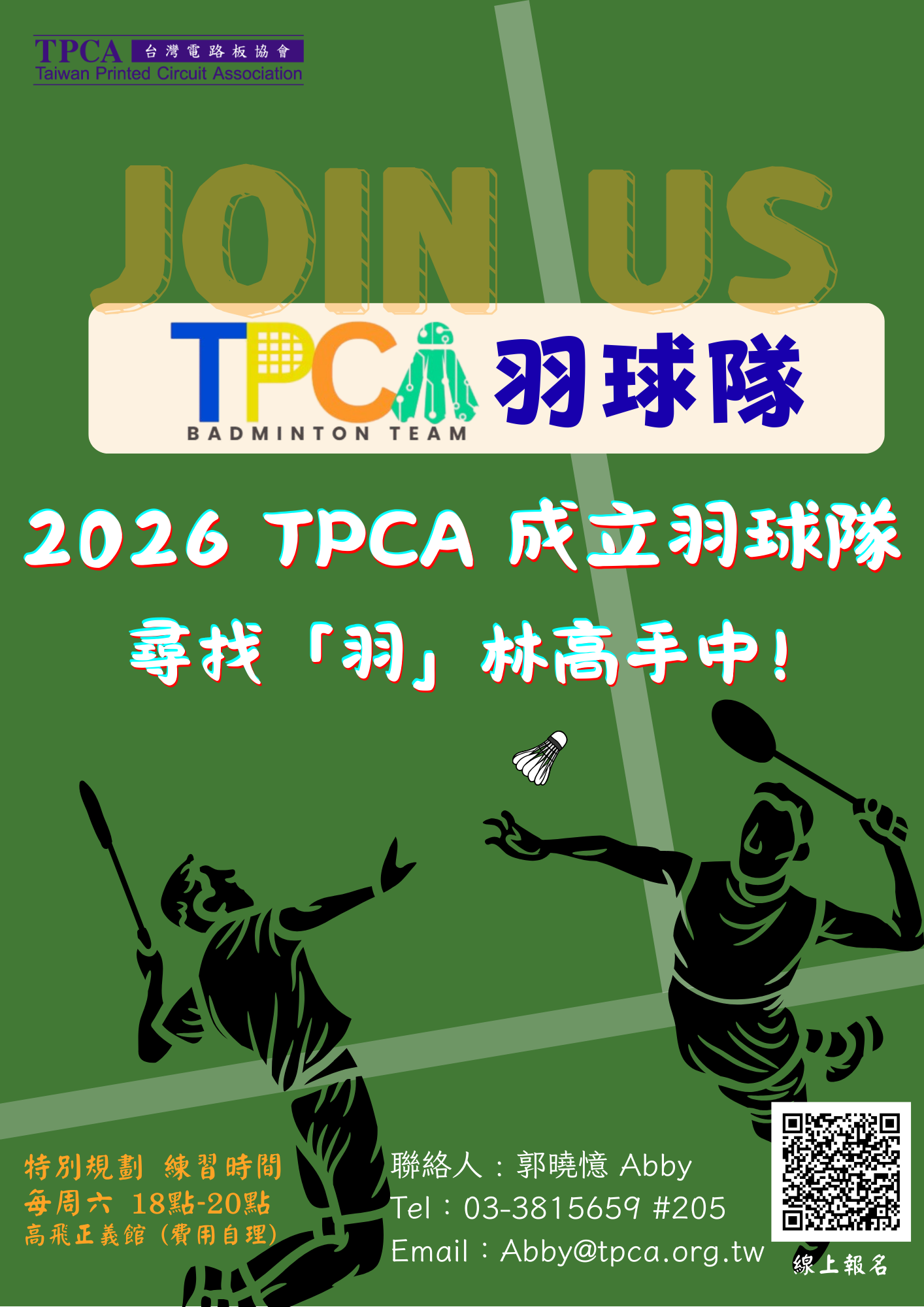 2026 TPCA 新成立羽球隊 隊員招募中